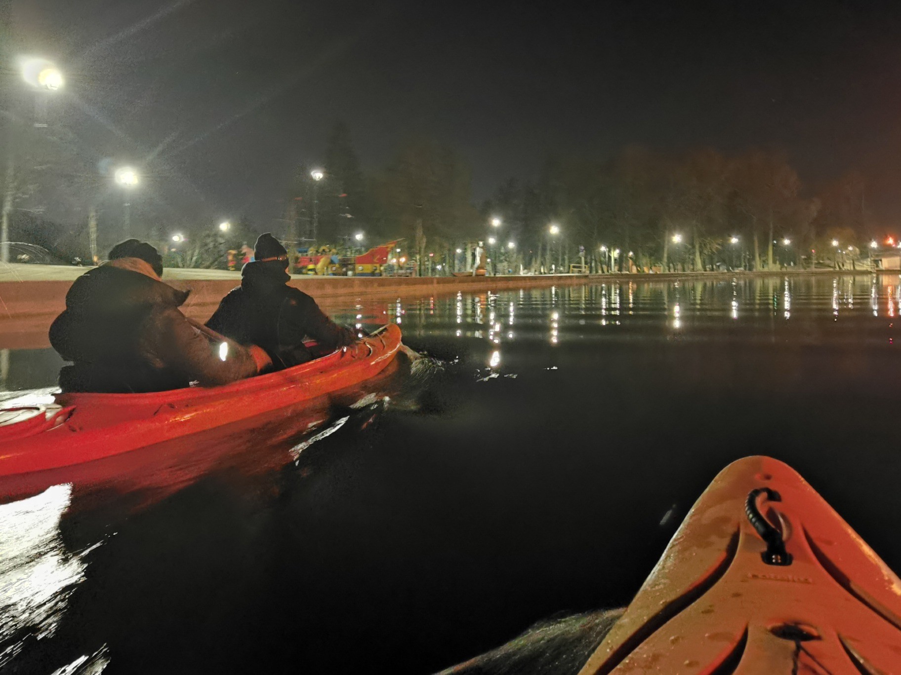 Spływ rzeką, kajak, noc